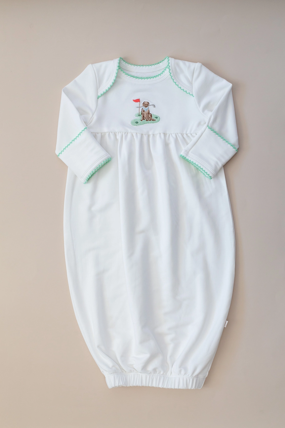 Soft, sweet, and designed for the very beginning 🤍 This timeless infant gown features a delicate embroidered detail at the chest, framed by gentle picot trim along the neckline and sleeves. The flowing silhouette allows for easy movement and quick nighttime changes, while the softly gathered bottom keeps little feet cozy and covered. Perfect for newborn snuggles, first photos, and coming-home moments, this gown blends classic charm with everyday comfort. Details: • 95% Bamboo Viscose, 5% Spandex French Terry fabric • Classic infant gown silhouette • Embroidered detail at chest • Picot trim at neckline & cuffs • Long sleeves for warmth • Elasticized bottom for easy changes • Soft, breathable fabric ideal for newborn skin • Wash on gentle, lay flat to dry An heirloom-inspired essential you’ll treasure from the very first days 🪿✨